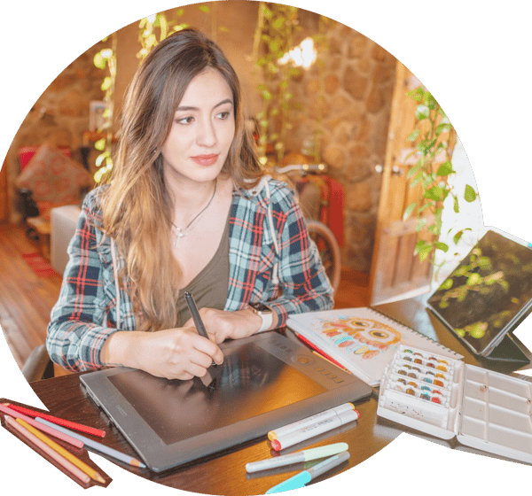 Trabajo con técnicas tradicionales como acuarela, gouache y lápices de colores, además del arte y diseño digital.